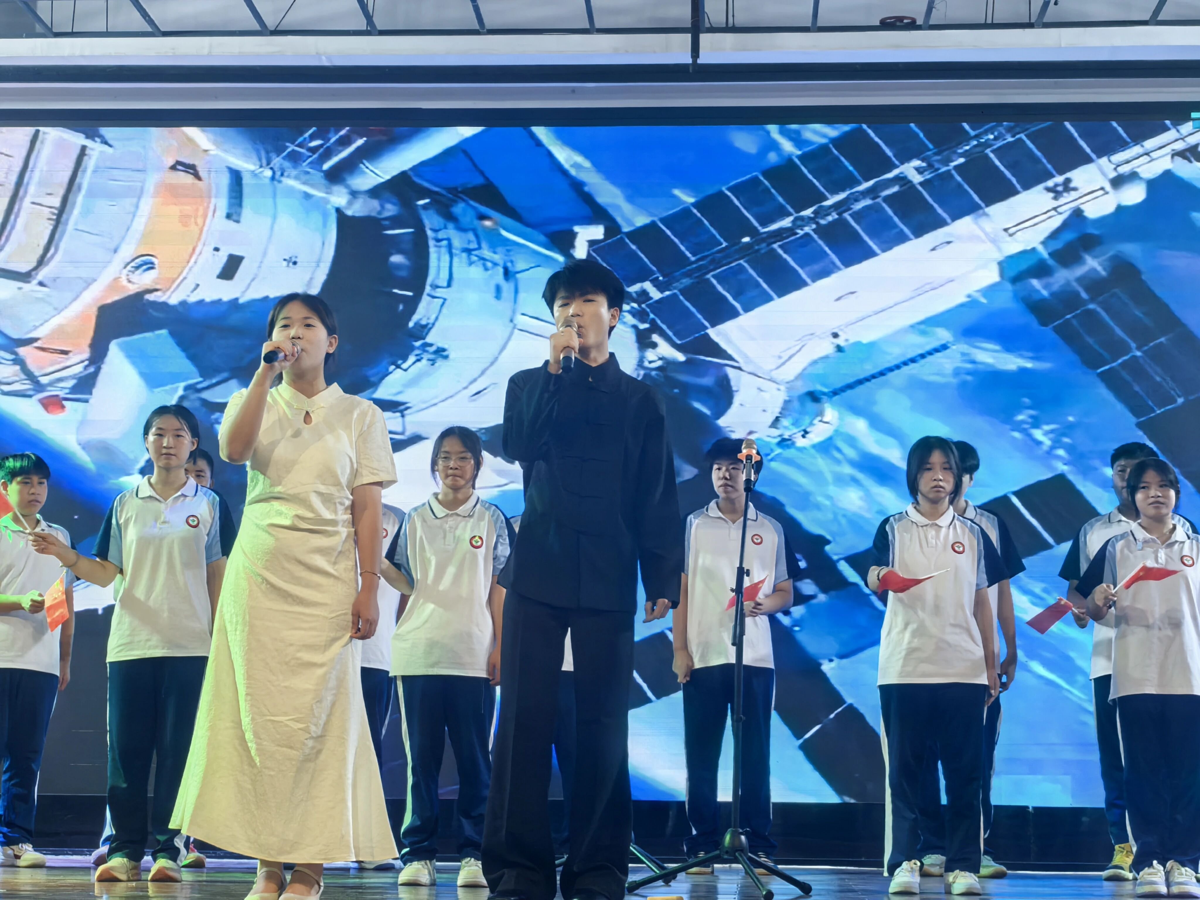 比赛在翁颖颖老师热情洋溢的开场白中拉开帷幕,她向现场师生介绍了担任评委的老师,并宣布比赛正式开始。随后,来自不同班级的选手们依次登台,用真挚的情感、铿锵的语调,为祖国献上一场精彩的 “诵歌盛宴”。