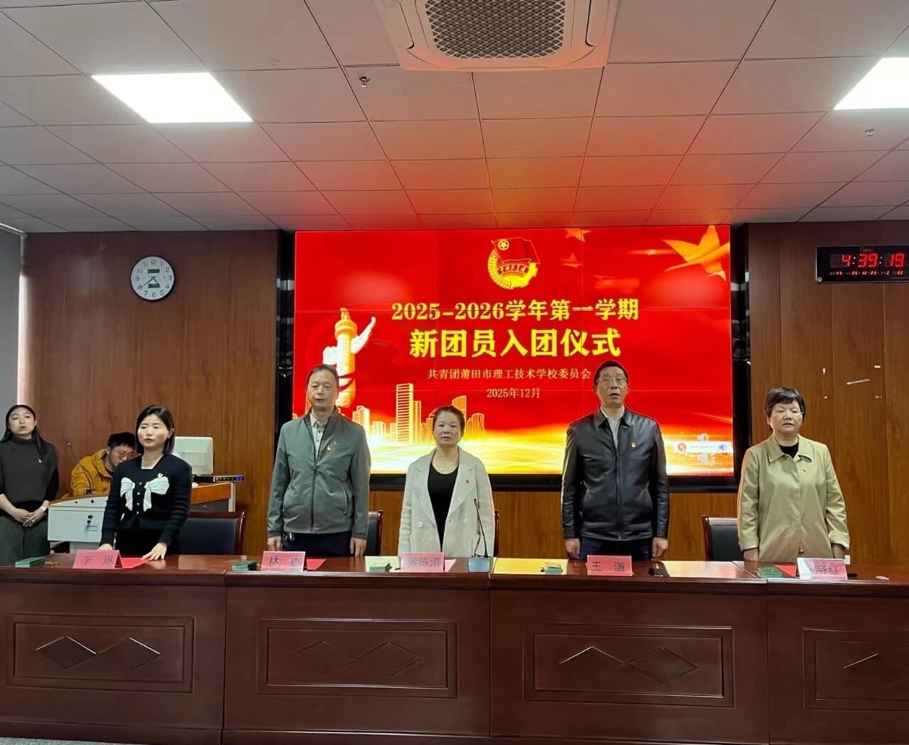 12月23日下午,莆田市理工技术学校2025年第二批新发展团员入团仪式于一楼会议室顺利举行。党支部书记黄陈清、思政副校长王潇等党员代表出席本次仪式,老团员代表、2025年新发展团员参与此次仪式,本次仪式由校团委梁青主持。