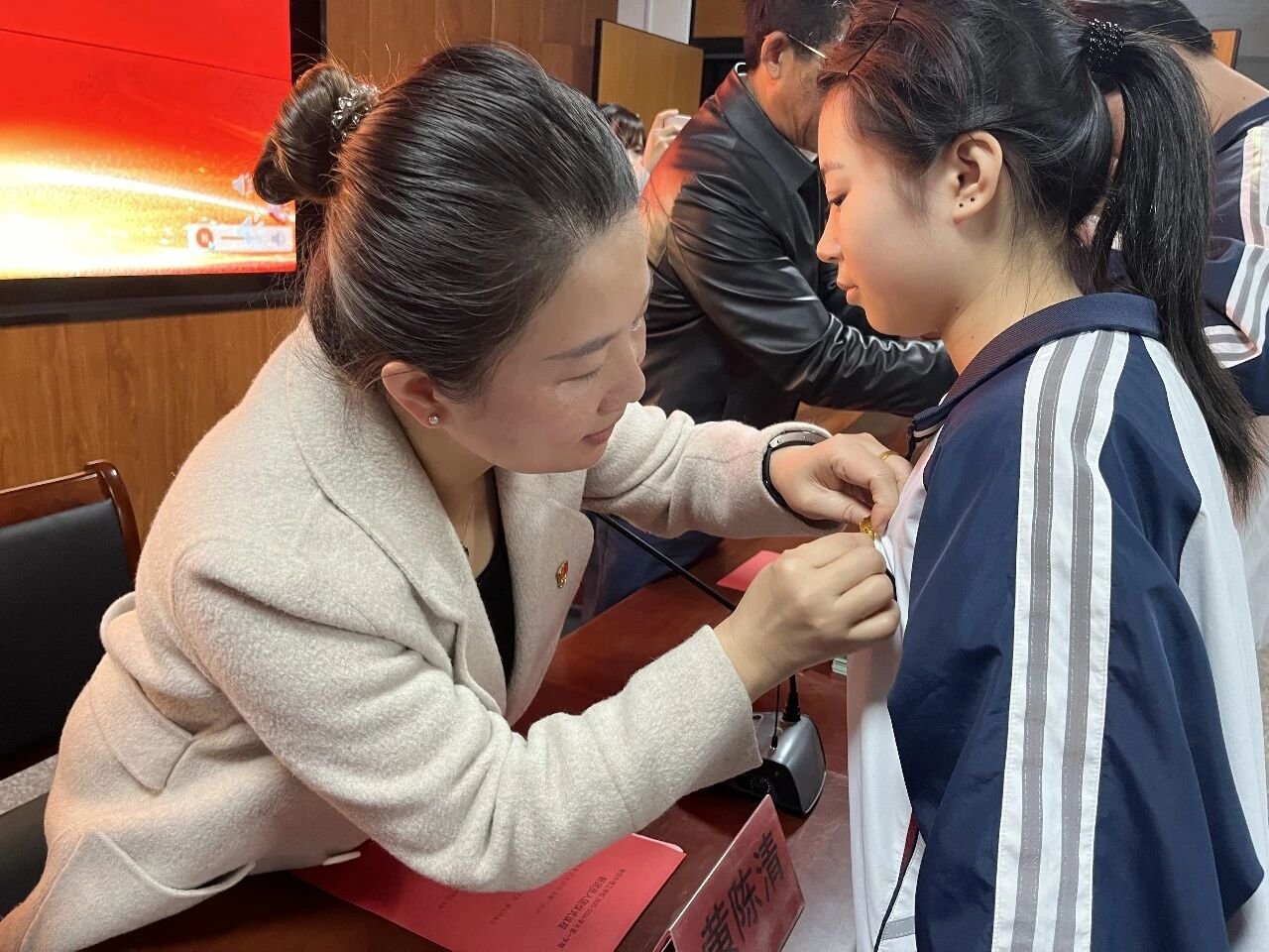 团员的先进性,要体现在行动中、闪耀在岗位上。希望你们在班级里当表率,在校园中树新风,积极投身志愿服务,把青年能量辐射到身边、传递到社会,用实际行动诠释“服务青年、服务社会”的承诺,为团旗增辉添彩。