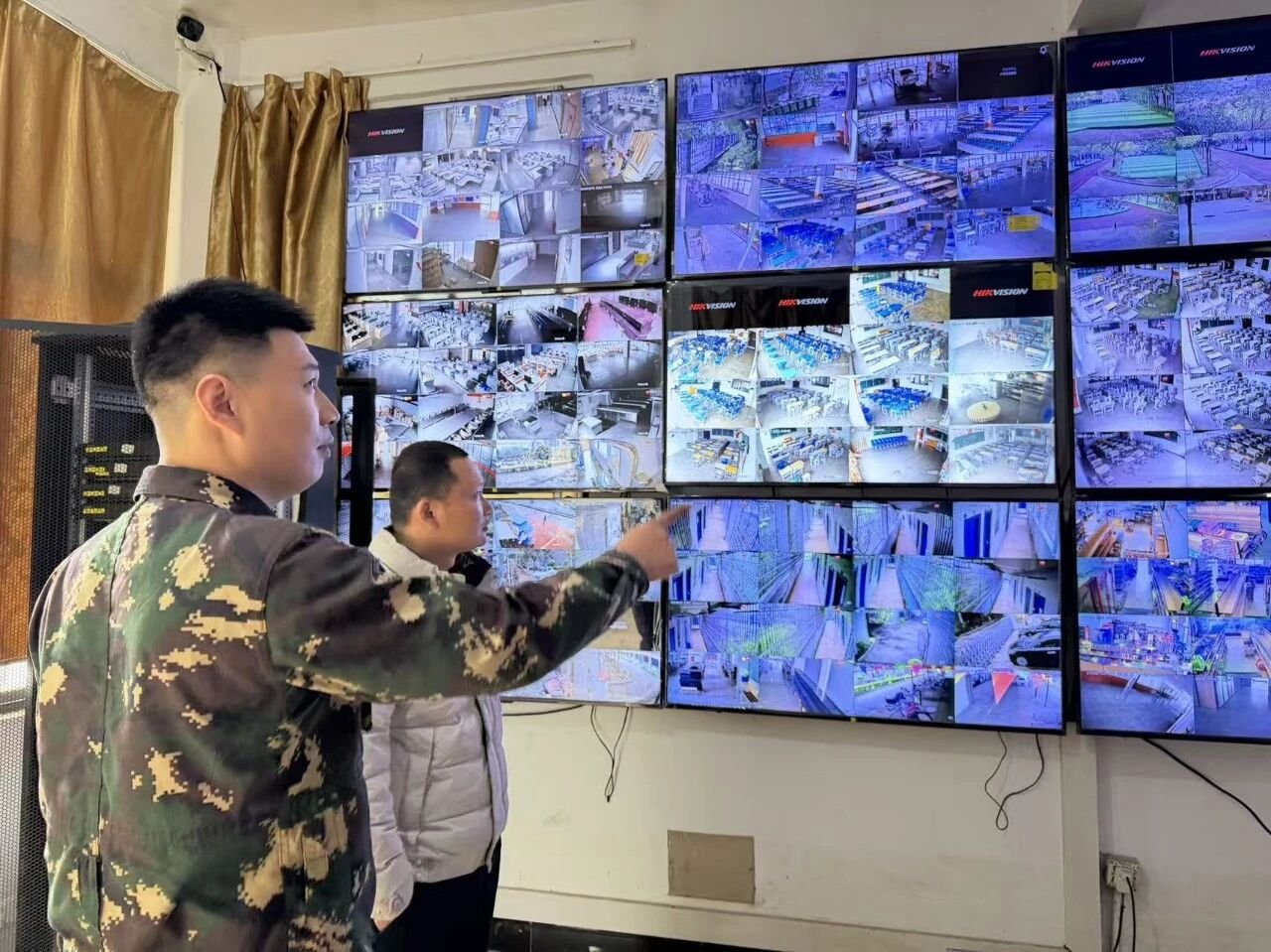 检查组分成三组,对教学楼、食堂、教师办公室、学生宿舍楼、消防设施设备、实训室、教室等重要部位开展拉网式安全隐患排查。