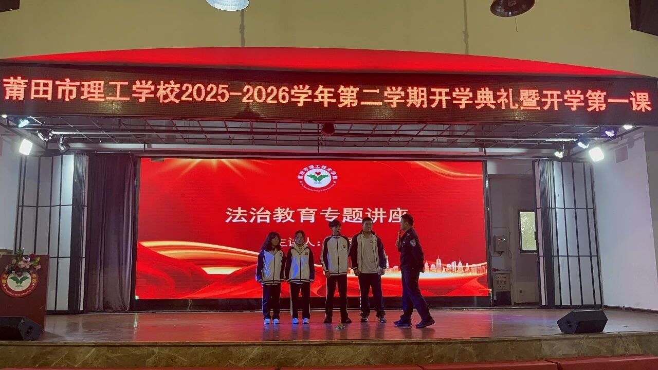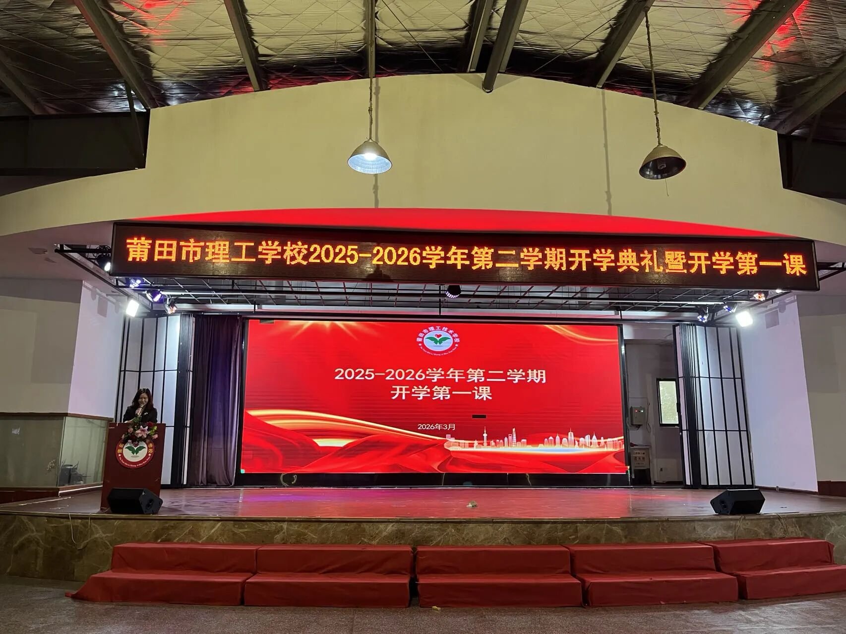 春回校园,万象更新。为引导学生筑牢思想根基、强化安全意识、明确成长方向,莆田市理工技术学校于2025-2026学年第二学期开学首日,以“以梦为马践初心,智赋技能报家国”为主题,开展了内容丰富、形式多样的开学第一课教育活动,为新学期注入奋进力量。