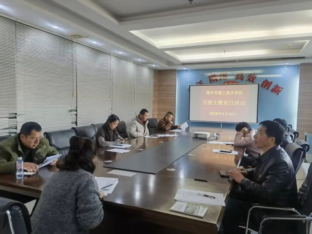 3月10日下午,莆田市理工技术学校党支部在二楼党员会议室召开组织生活会,支部全体党员参会,会议以“强化党性修养,严守师德师风,立足职教岗位,勇担育人使命”为主题,严肃规范开展各项议程。