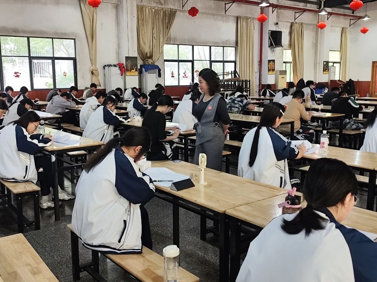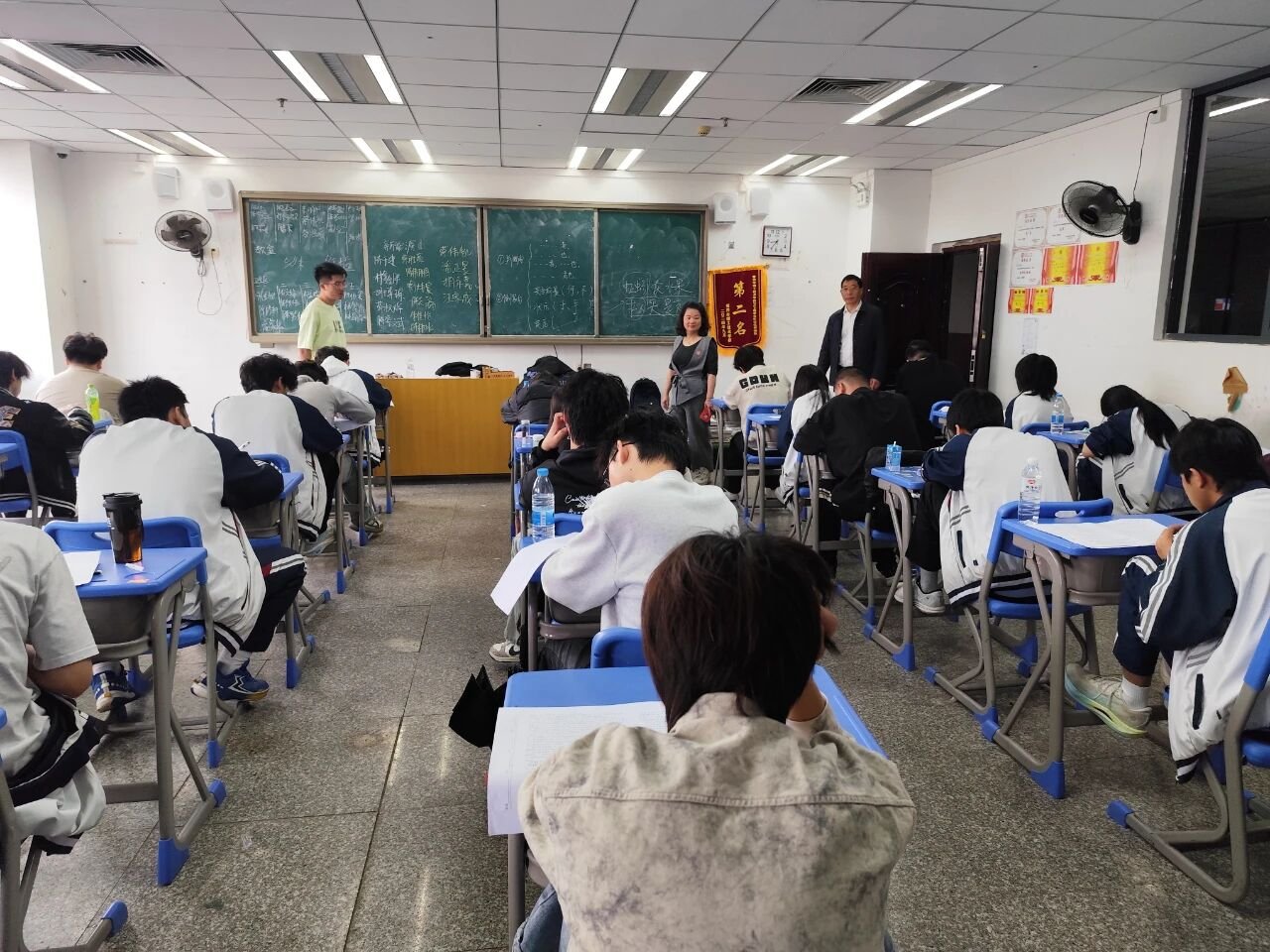 考试期间,学校领导高度重视。党支部书记黄陈清、副校长王潇等亲自深入考场进行巡逻检查。他们认真查看考场秩序、学生答题状态以及监考教师履职情况。每到一处,领导们都仔细观察,确保考试环境安静、有序,为学生们营造良好的考试氛围。
