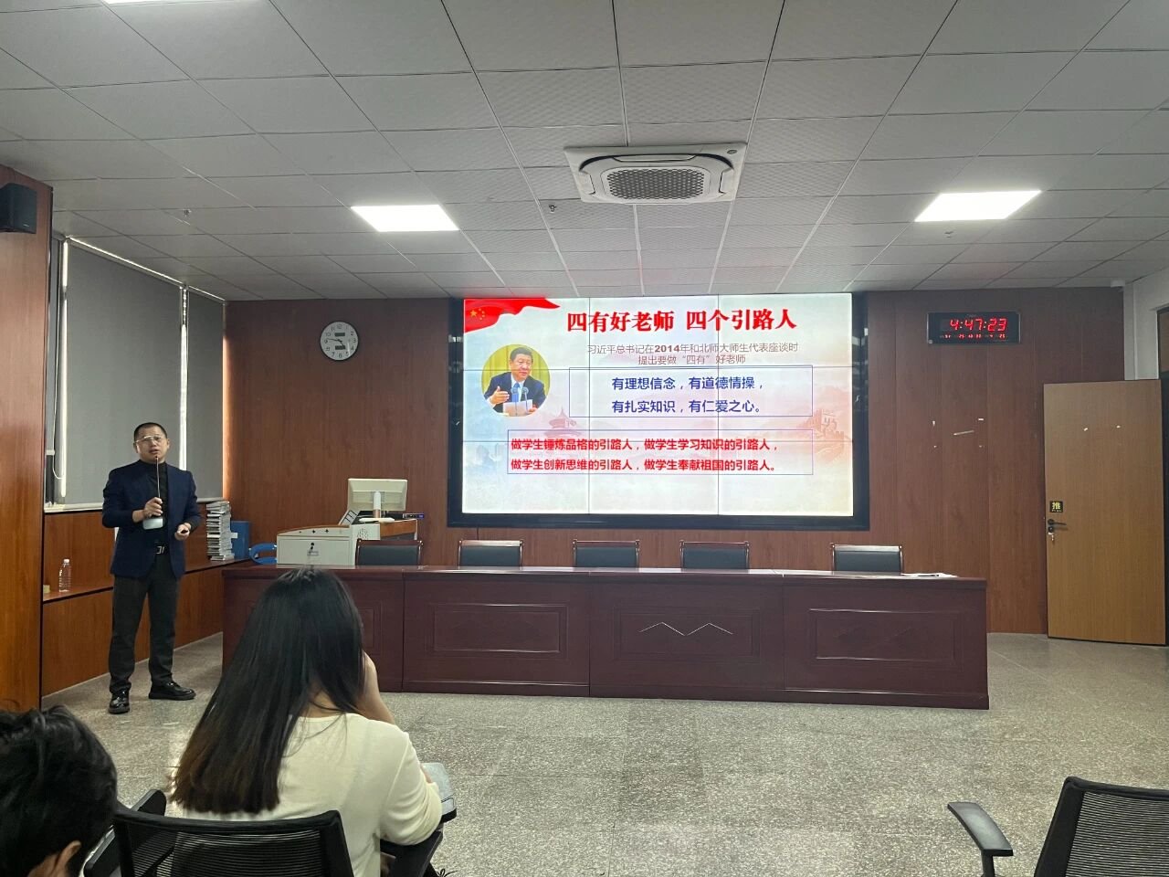 谈及 “新时代师德师风建设的要求”,吴主任紧扣时代脉搏,指出在教育理念、教育方式不断更新的当下,教师应紧跟时代步伐,以更高的标准要求自己,争做四有好老师,做好四个引路人,为学生树立榜样。