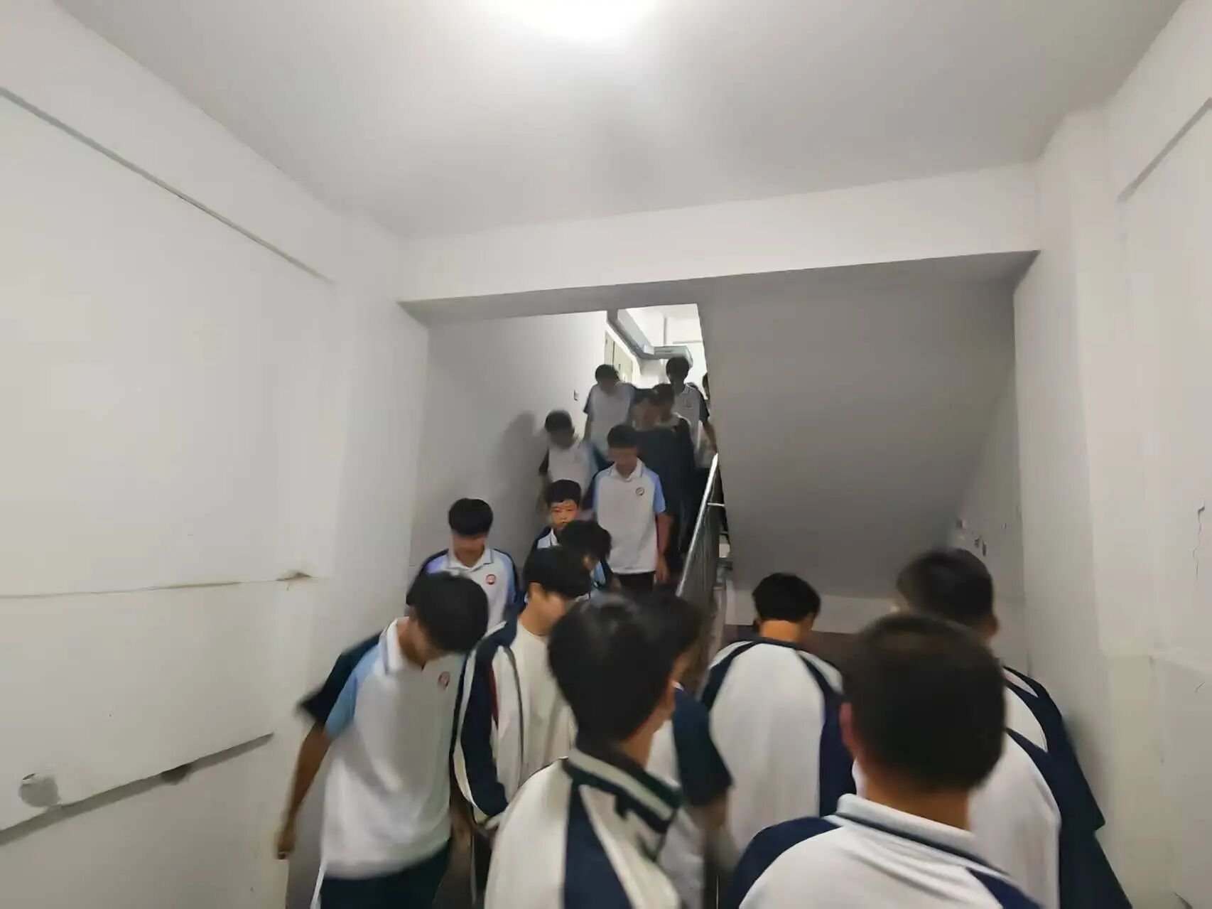 演练模拟晚熄灯后学生准备就寝时突发地震,随后引发火灾的场景。因配电箱起火,楼道照明熄灭,应急灯亮起,学生们在老师的指导下,按照疏散指示灯的方向有序逃生。遇到浓烟时,学生们用衣领、衣襟或手臂衣物掩住口鼻,俯首猫腰前行。整个疏散过程中,学生们保持冷静,服从指挥,不推搡、不拥挤,有序地撤至操场区域。