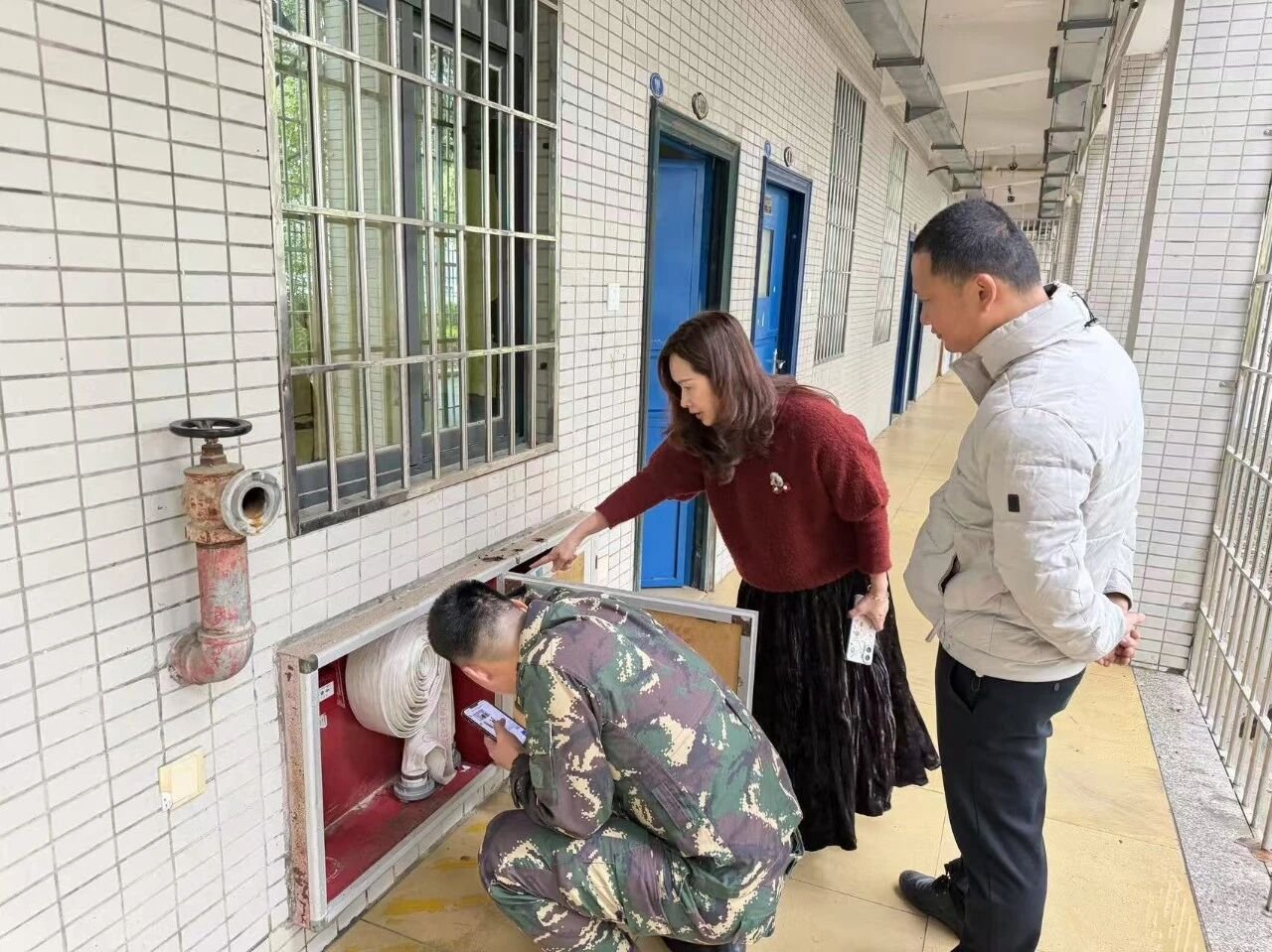 检查组分成三组,对教学楼、食堂、教师办公室、学生宿舍楼、消防设施设备、实训室、教室等重要部位开展拉网式安全隐患排查。